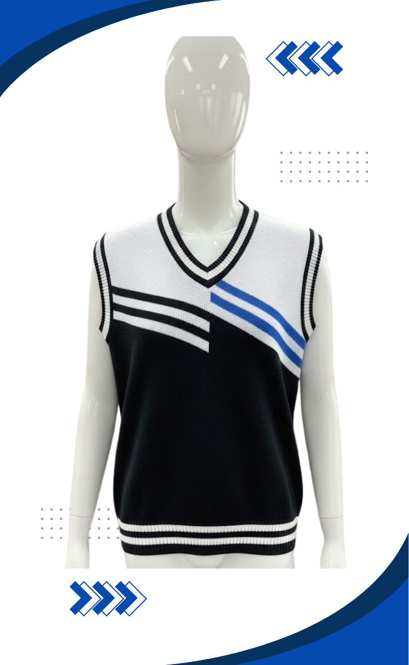 El modelo cuello V, tejido en punto jersey, brinda abrigo, comodidad y resistencia para el uso diario de los estudiantes. Incluye bordado de insignia institucional, manteniendo la identidad del colegio con un acabado profesional.